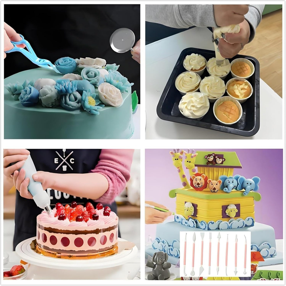 Transform your baking into professional artistry with this comprehensive cake decorating kit containing every essential tool for creating stunning confections.The complete 298-piece set features a stable turntable, precision piping tips, and specialized shaping tools that make intricate designs accessible to bakers of all skill levels.From perfectly layered cakes to elegantly piped decorations, this collection empowers you to produce bakery-quality results right in your home kitchen.